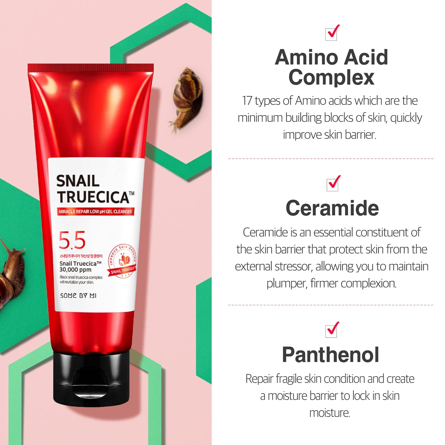 - Packed with snail truecica and mucin to soothe, smooth, and strengthen your complexion with every wash